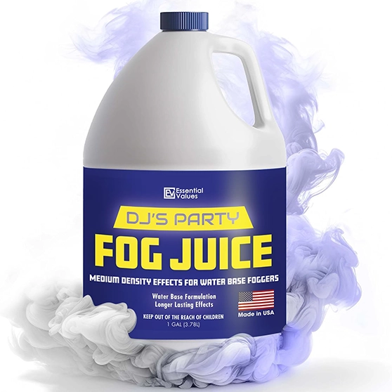 Essential Values Fog Machine Fluid – Extreme High Density Fog Juice (128 FL OZ / 1 Gallon) – White-Out Conditions for Water Based Foggers Designed for 700 Watts+ – Manufactured in USA(32 fl oz – Extra High Density)