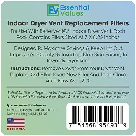 Essential Values Offers Every Day Items That Don't Break The Bank. You'll Find Great Savings In Our Replacement Indoor Dryer Vent Filters For The BetterVent Dryer Vent System. Made Of Superior Dual Treated Polyester For the Reduction of Dust and Lint Escape. Manufactured In The USA.