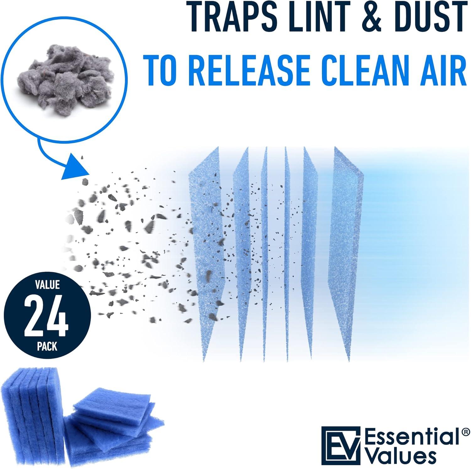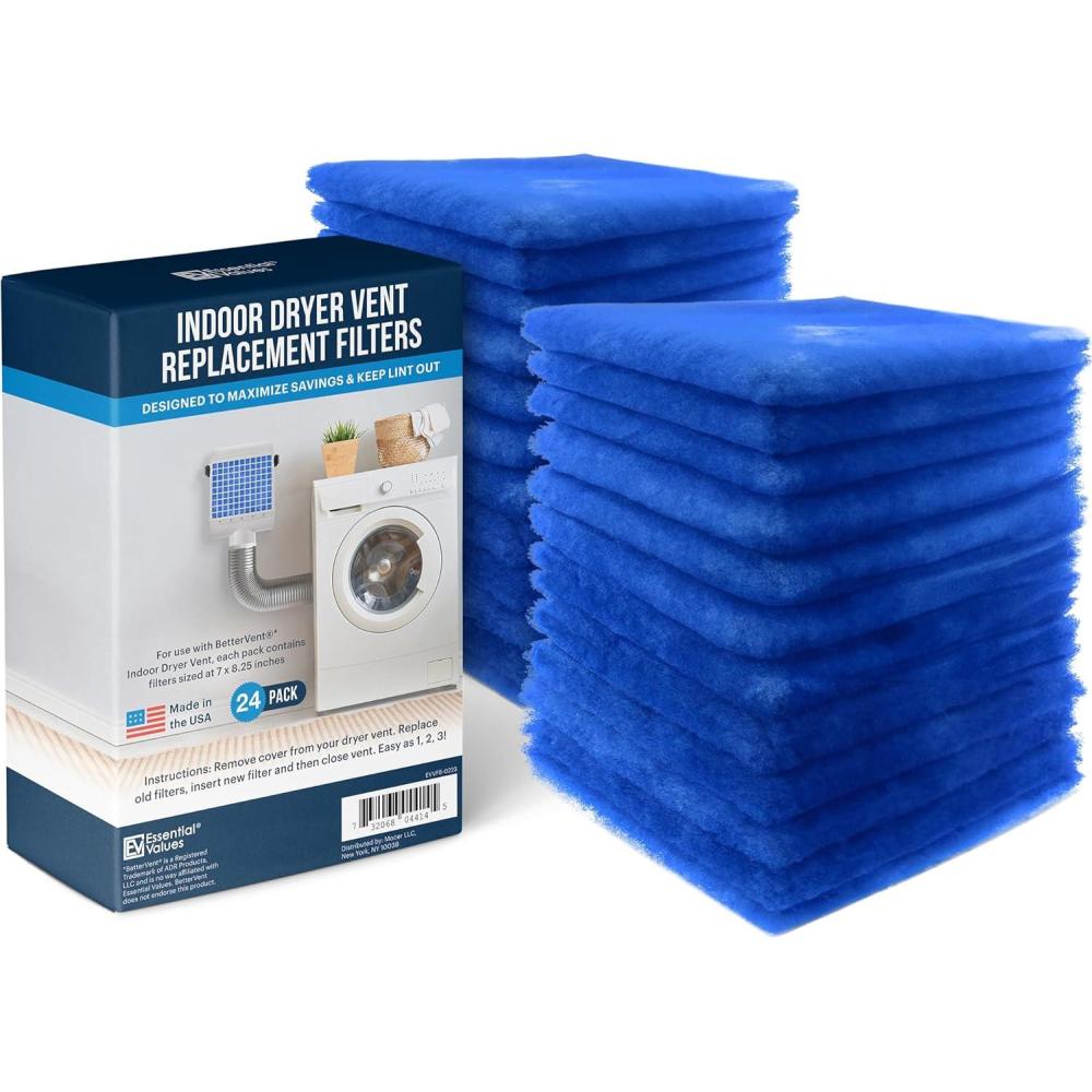 Essential Values 12 Pack Dryer Filter Replacement – Compatible with Better Vent Indoor Dryer Vent (60 Dryer Loads Total)(24 Pack)