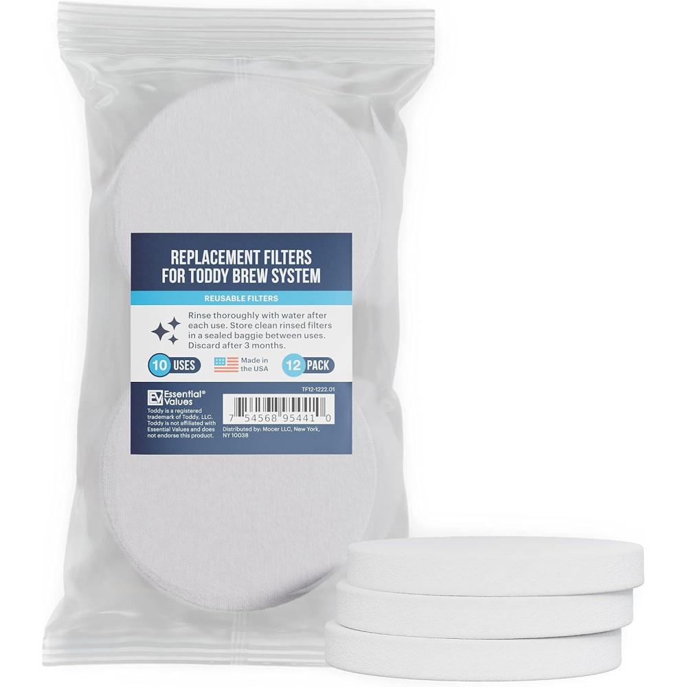 Essential Values 8 Pack Cold Brew Coffee Filters - Replacement Coffee Filter Bags - Compatible with Toddy Cold Brew Maker(12-Pack (Filter))
