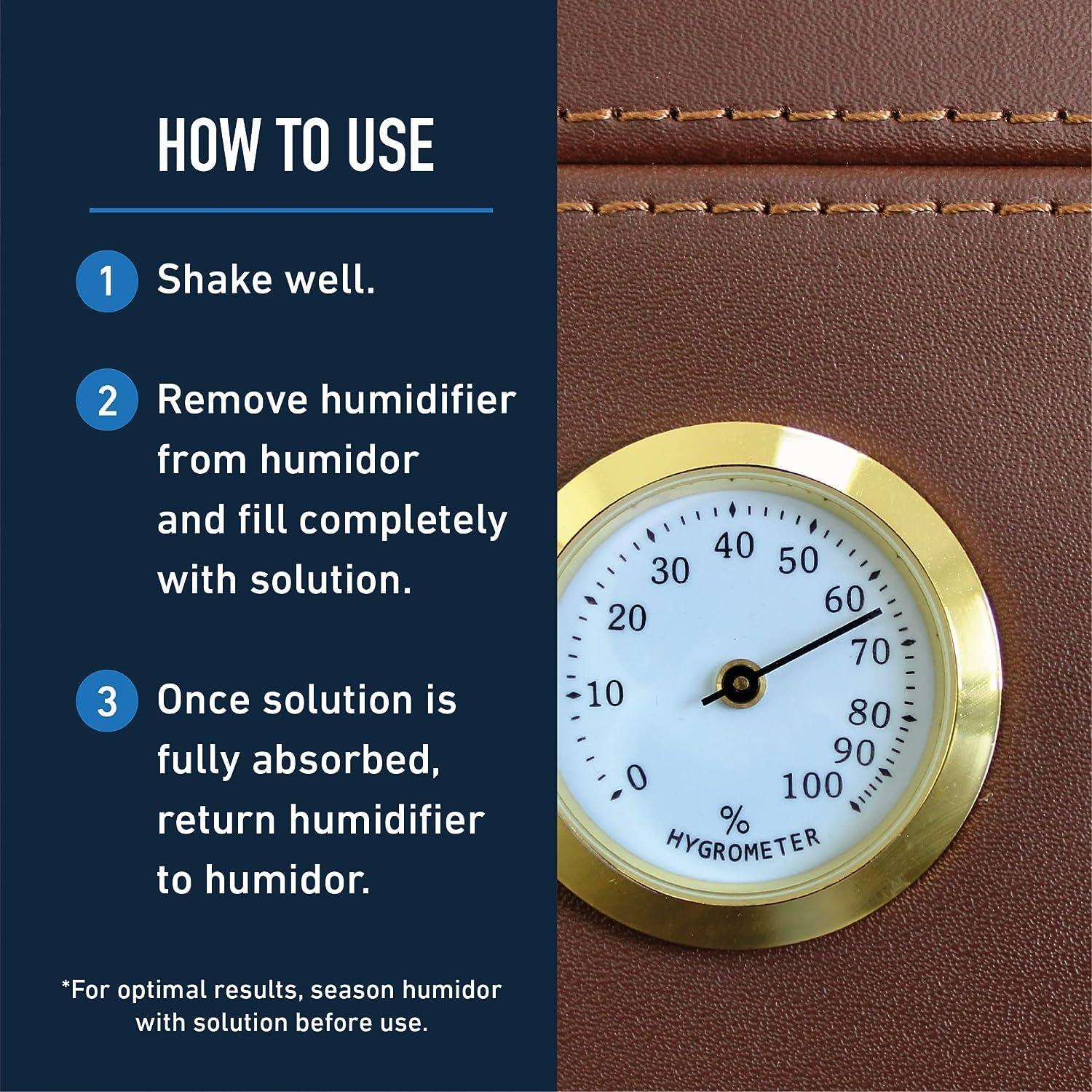 Safe & USA-Manufactured: Made from non-irritating propylene glycol, the cigar humidor juice forms a protective barrier to maintain ideal RH, ensuring the taste, texture, and quality of your collection remain consistent.