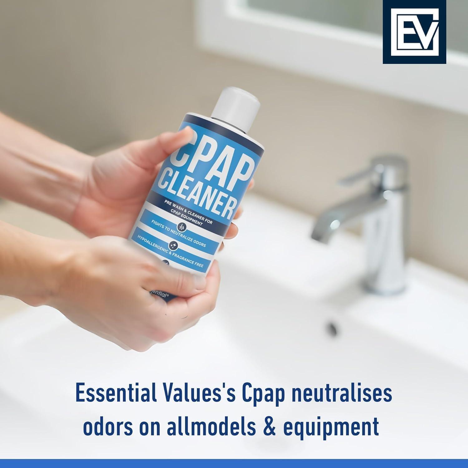 Essential Values CPAP Cleaner Pre-Wash, Safe & Scent-Free – 16 Fl Oz – Hose CPAP Cleaning Kit Supplies with Dye-Free Prewash Soap – Compatible with All C PAP Equipment & Machines(2 packs)