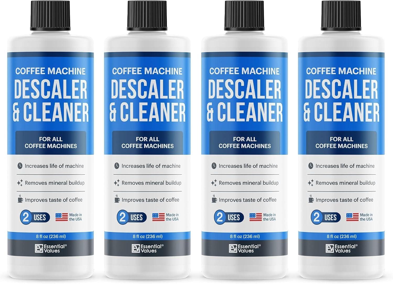 Essential Values Descaling Solution for Delonghi Keurig Breville Nespresso (4 Uses) – Coffee Machine Descaler Cleaner – Liquid To Descale Automatic Coffee Makers & Espresso Machines(Universal)