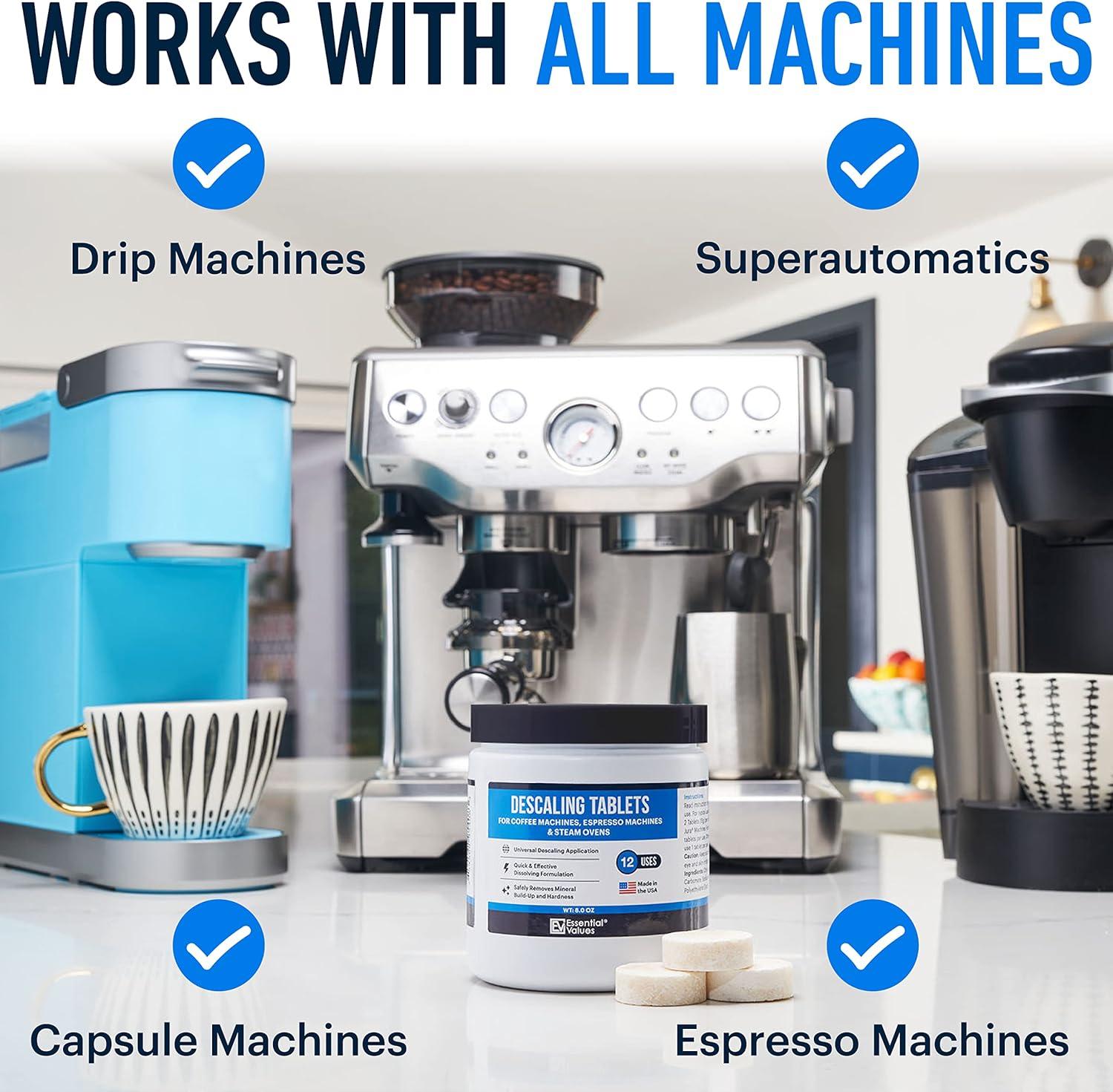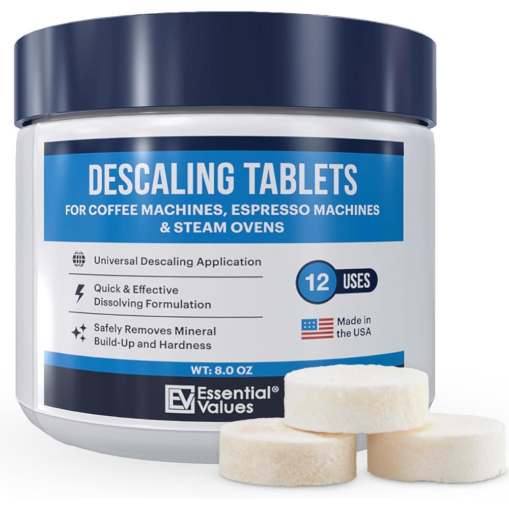 Essential Values Descaling Tablets (12 Count/Up to 12 Uses) for Jura, Miele, Bosch, Tassimo Espresso Machines and Miele Steam Ovens (1 Pack)(12 Count (Pack of 1))