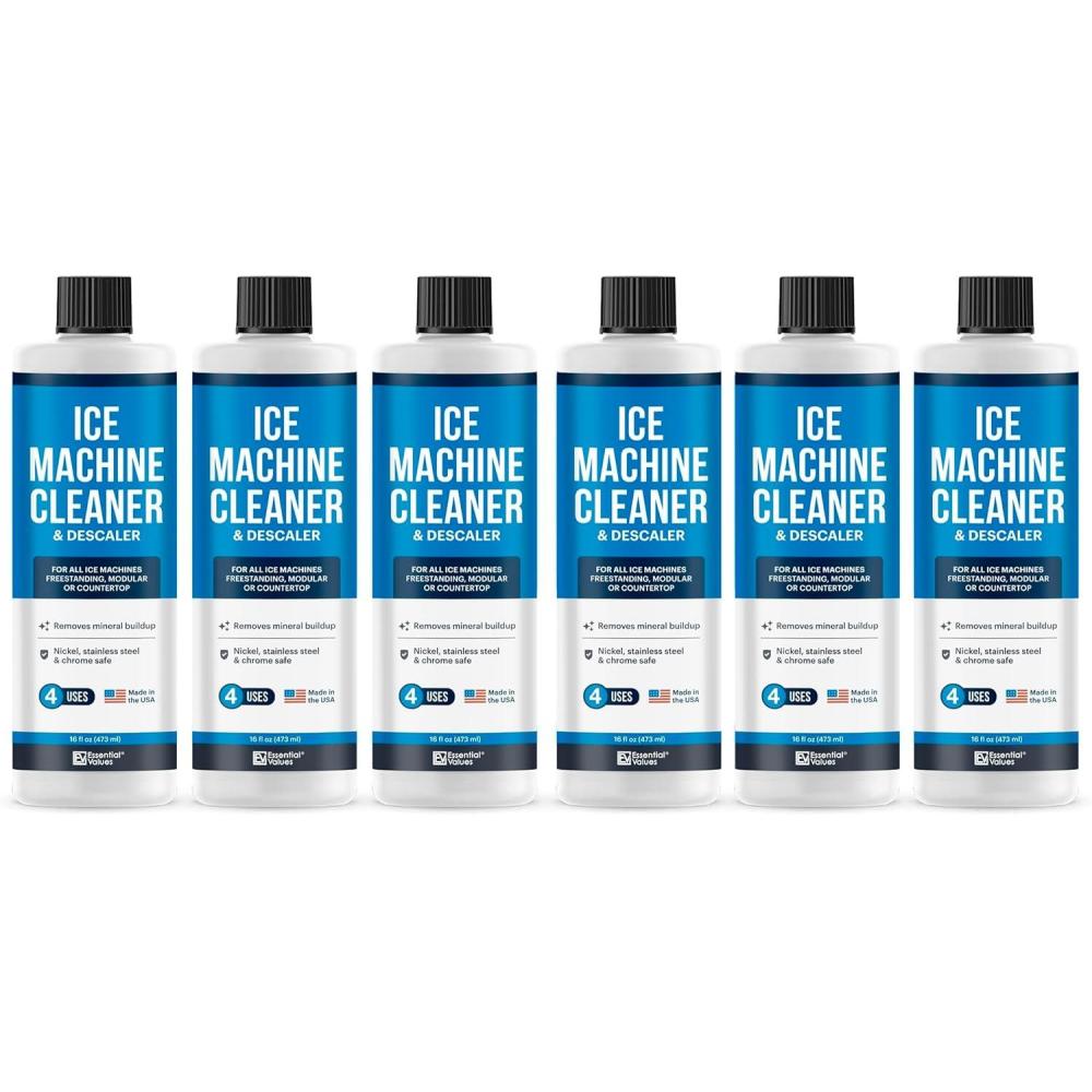 Essential Values Ice Machine Cleaner and Descaler 16 fl oz – Nickel Safe Countertop Ice Maker Cleaner – Compatible with Major Brands (Scotsman, KitchenAid, Affresh, etc.) – 6 pack(128 Fl Oz (Pack of 1))