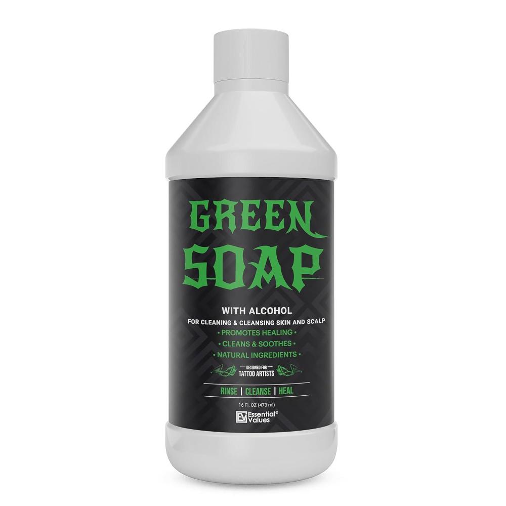 Essential Values Natural Green Soap (16 oz) – Gentle Tattoo Cleanser & Healing Promoter – USA Made