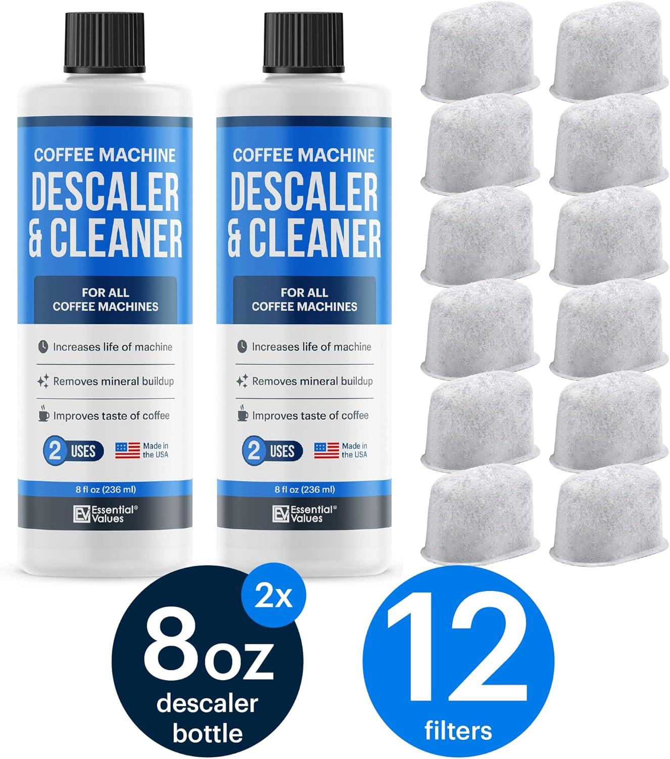 Best Value Descaler On Amazon – 2PK, Two 4oz Uses Per 8oz Bottle and 12 Replacement filters for your Keurig
